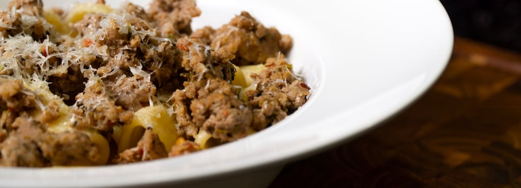 Serve the pasta and leave the meat in the pan to be added on top. Most stores only sell large 1.5 lb+ packages of ground turkey. Typically more than you want to eat in one sitting. Luckily meat saves great.